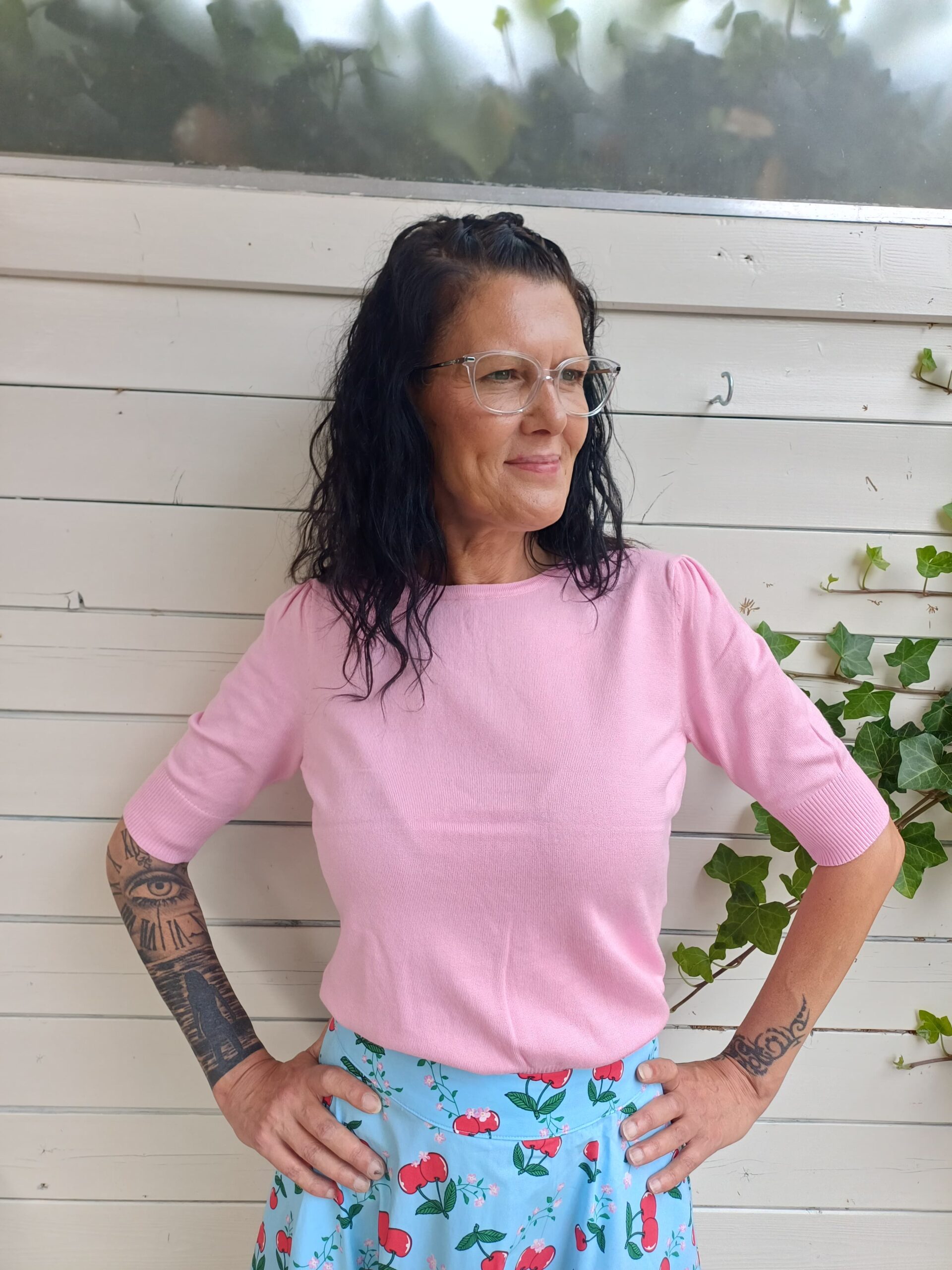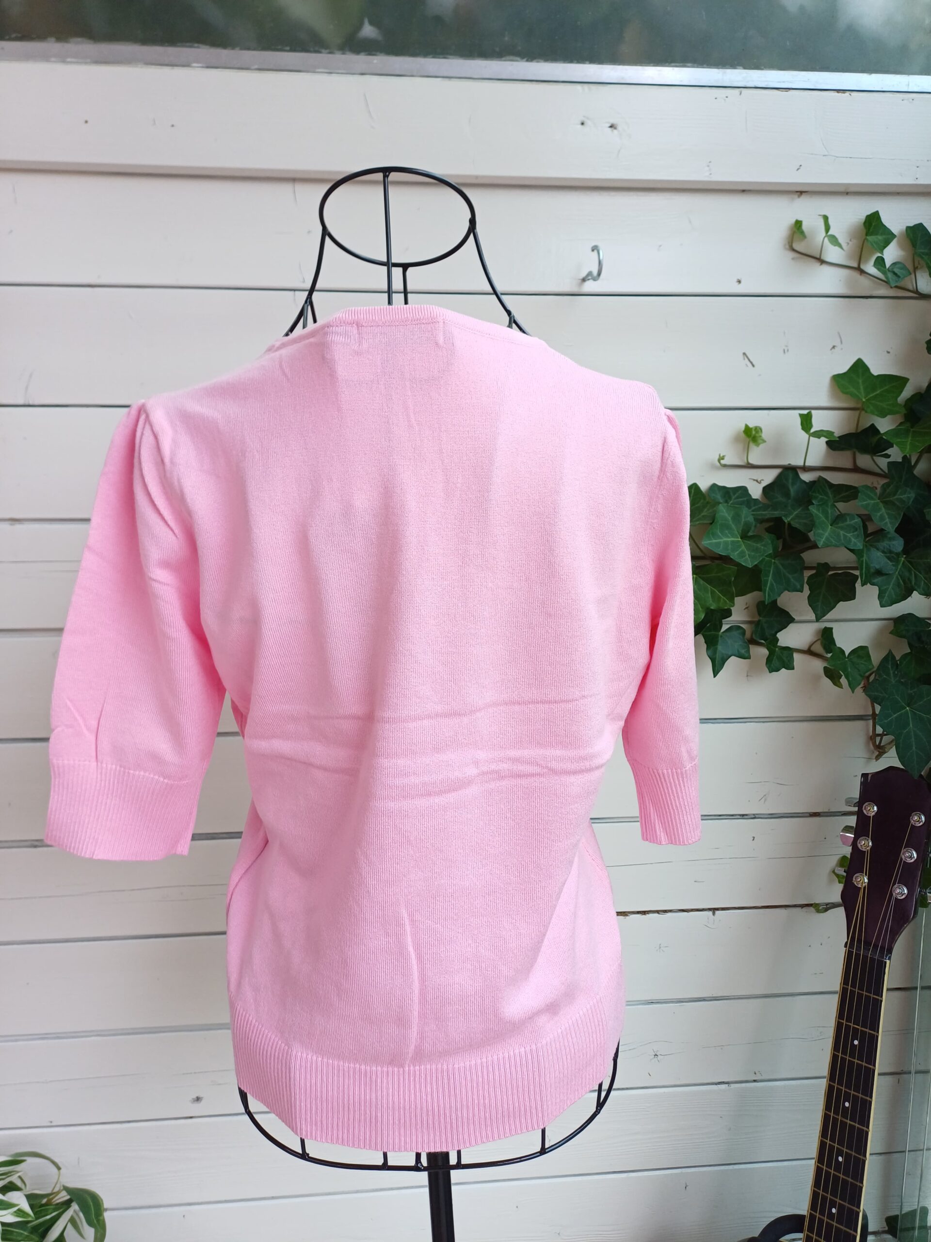 Het model is 1,74 m en draagt maat L